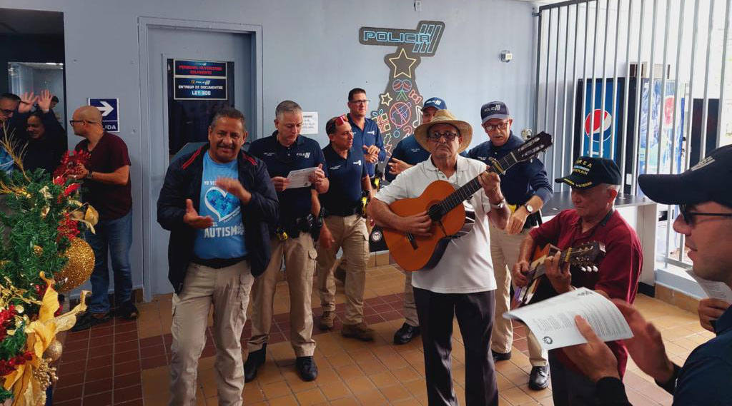 BAYAMÓN – En plena celebración navideña, el teniente coronel Israel Vázquez y la teniente coronel Margarita George en conjunto de varios agentes del Negociado de la Policía de Puerto Rico, adscritos a Liga Atlética Policiaca y Relaciones con la Comunidad de Bayamón, personas de distintas comunidades llevaron alegría al personal de la comandancia de la Policía con guitarra, maracas y panderetas, sin dejar de pasar por alto unas voces extraordinarias. De esta manera les alegraron el día a todos los funcionarios públicos y a sus visitantes.