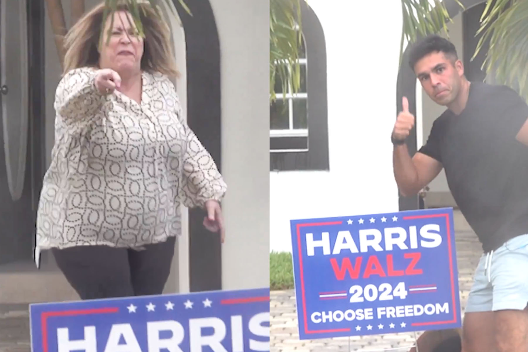 En un video publicado a través de las redes sociales, puede verse la iracunda reacción de una mujer, luego de que una persona que se hizo pasar por un miembro de la campaña de la vicepresidenta Kamala Harris, quiso jugarle una broma colocando un letrero de campaña en el patio de la residencia de ésta.