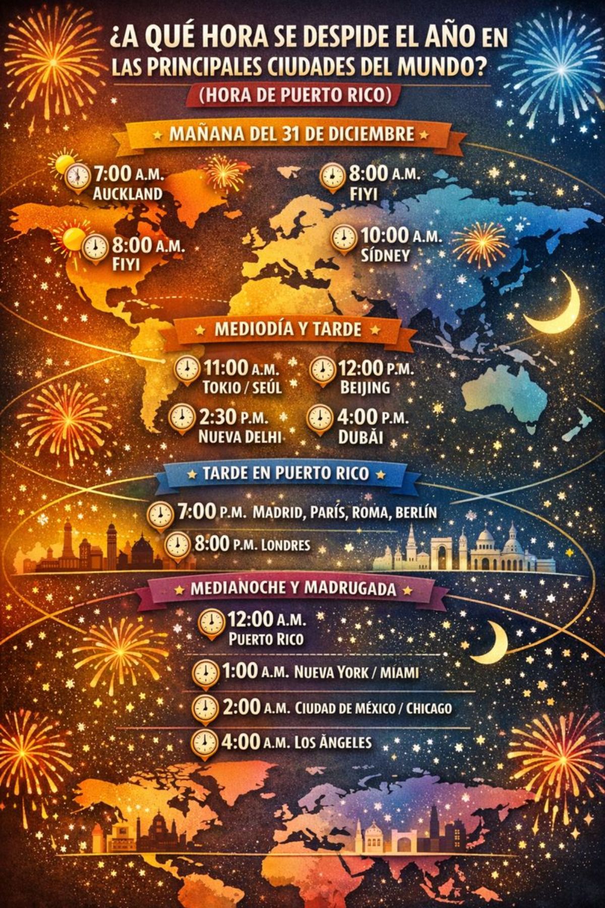 ¿A QUÉ HORA SE DESPIDE EL AÑO EN LAS PRINCIPALES CIUDADES DEL MUNDO? (HORA DE PUERTO RICO)